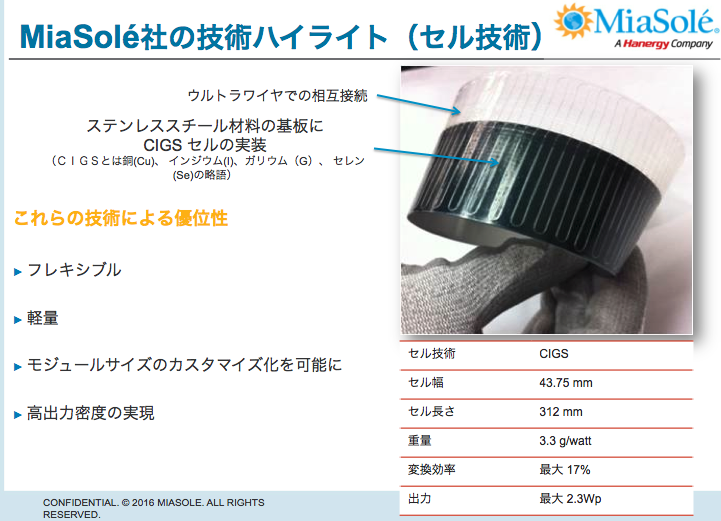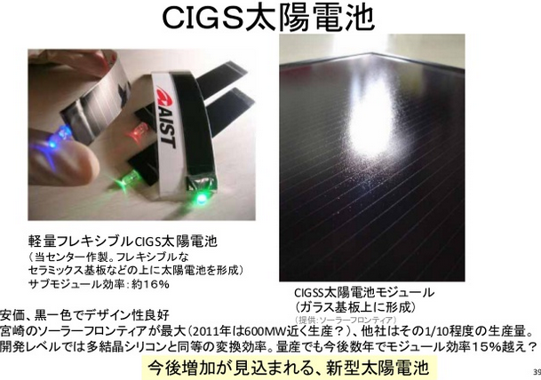 ソーラーパネルは熱があると発電容量効率が下がりますがCIS,CIGSでは、発電量が落ちにくい。