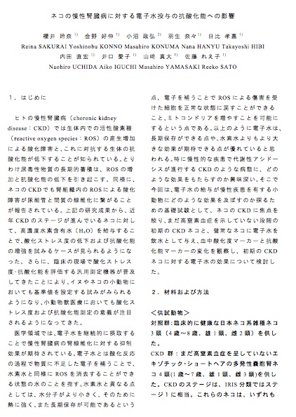 実際の臨床現場で、がん患者さんの酸化ストレスを、3週間の通常の飲水で下げたデータを医学誌に発表しました。」